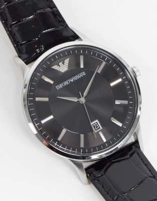 Emporio Armani leather watch in black