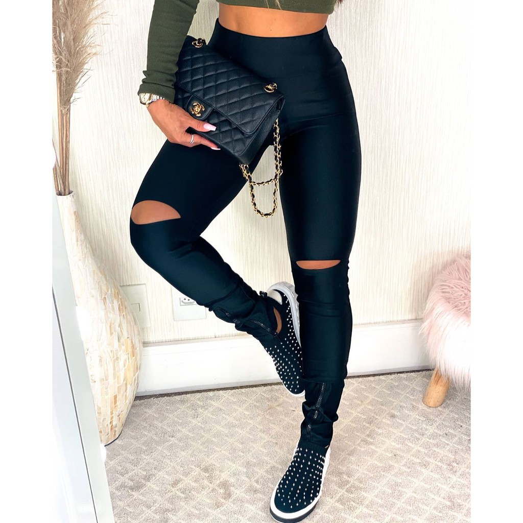 calça com rasgo corte no joelho e zíper na barra | Shopee Brasil